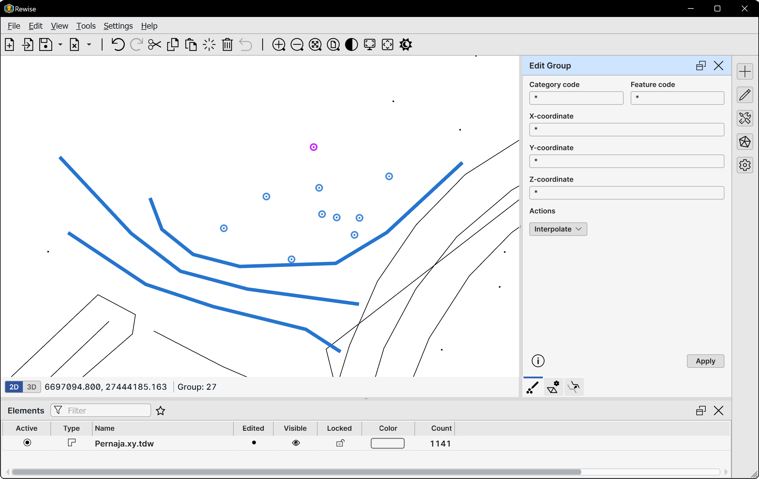 Selected items are displayed with blue color. The active point and line are also considered to be selected.