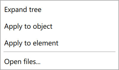 Secondary mouse button opens pop-up menu with additional functionality. Available commands depend on the current tree item type and application state like the active object or the active file.